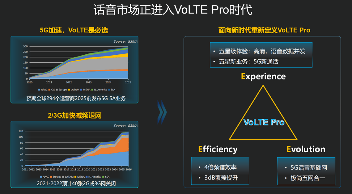 4G VoLTE成为语音最佳选择,在2021上海世界移动大会“新通话产业峰会”上,多名专家表示,部署VoLTE是全球开展趋势,随着VoLTE的开展,EVS越来越普及,带给用户最佳语音体验,让语音听起来更加生动饱满以及自然。并且,VoLTE作为4G时代的核心语音技术,也将最终走向VoLTE Pro时代。
